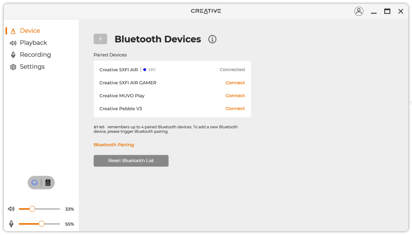 Har du glemt rækkefølgen på dine enheder? Bare rolig, du kan downloade og installere Creative-appen på din pc, så kan du tjekke. Du kan også vælge enheder i nærheden, du vil parre med, eller let ordne hele listen med forbundne enheder via programmet.